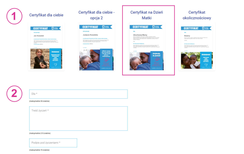 📃 Zaznacz opcję certyfikatu okolicznościowego, jeśli chcesz wręczyć prezent z okazji Dnia Mamy (1).