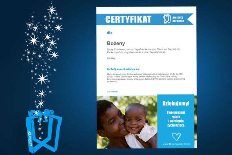 W tym roku możesz podarować potrzebującym dzieciom Prezent bez Pudła - czyli zestaw produktów humanitarnych, które ratują życie i zdrowie, chronią przed zimnem, dają namiastkę beztroskiego dzieciństwa, umożliwiają naukę tam, gdzie wojna lub katastrofa naturalna odcinają dostęp do szkół.