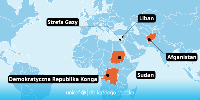 Skala potrzeb humanitarnych dzieci osiągnęła historyczne maksimum. Szacujemy, że ponad 210 mln dzieci w 146 krajach i terytoriach będzie potrzebować pomocy humanitarnej w 2025 roku, m.in. w Afganistanie, Sudanie, Demokratycznej Republice Konga, Strefie Gazy i Libanie, gdzie potrzeby są największe.