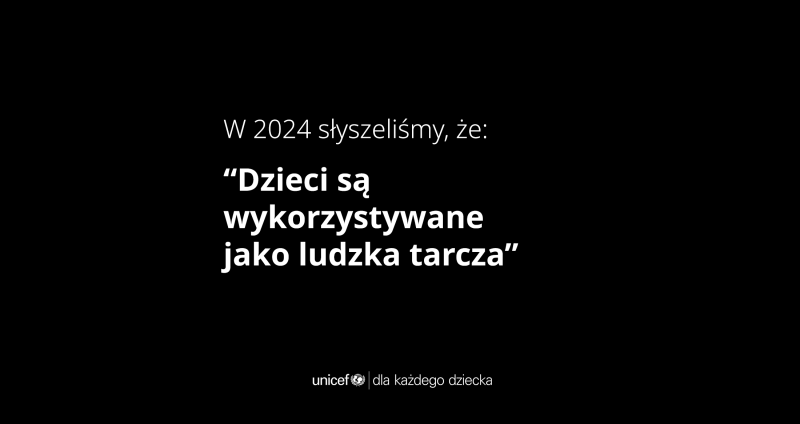Dla dzieci w Strefie Gazie nowy rok przyniósł więcej śmierci i cierpienia z powodu ataków, niedostatku i rosnącego narażenia na zimno. Zbyt długo czekamy na zawieszenie broni. Zbyt wiele dzieci zginęło lub straciło bliskich w tragicznym początku nowego roku. Już dawno ostrzegaliśmy, że niewystarczające schronienie, brak dostępu do żywności i opieki zdrowotnej, zła sytuacja sanitarna, a teraz także zimowe warunki zagrażają życiu dzieci w Gazie, szczególnie noworodkom i najmłodszym z problemami zdrowotnymi – powiedziała Catherine Russell, Dyrektor Generalna UNICEF.
